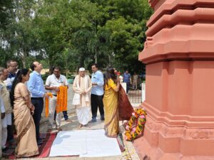 कार्यक्रम की शुरुआत राष्ट्रपिता महात्मा गांधी की समाधि स्थल पर पुष्पांजलि अर्पित कर की गई। इसके बाद गांधी मंडप जाकर महात्मा गांधी एवं लाल बहादुर शास्त्री की प्रतिमा पर माल्यार्पण किया गया।