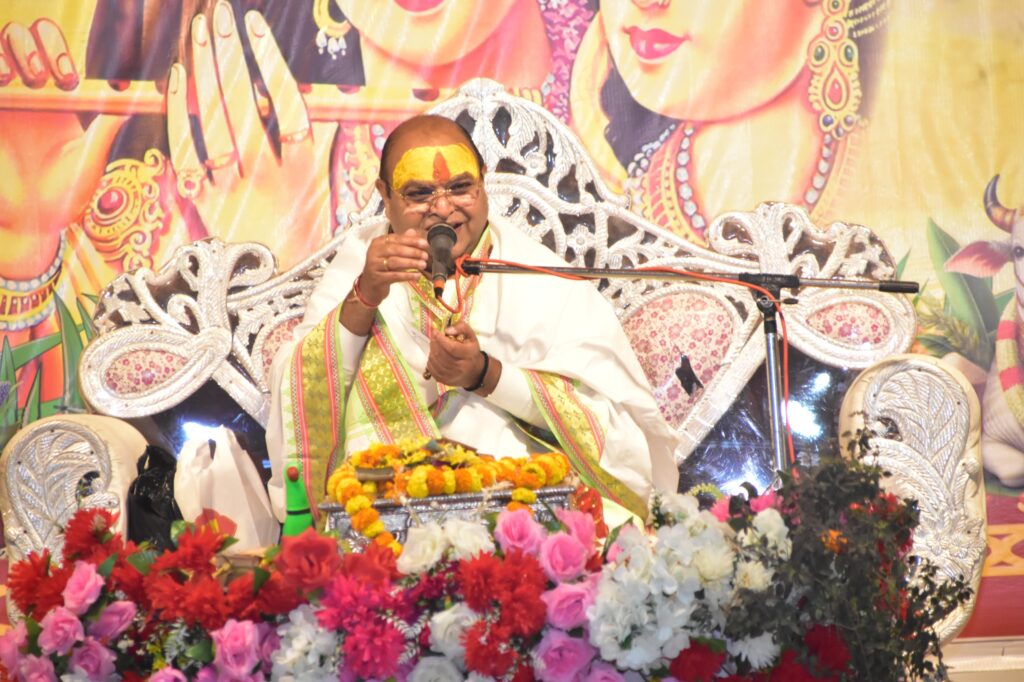 इस दौरान महाराज जी ने गिरिराज धरन, प्रभु तेरी शरण, राधा शरण, प्रभु श्याम शरण… भजन की प्रस्तुति की। सारे श्रद्धालु तालियां बजा-बजाकर झूमे। फिर महाराज जी ने श्रद्धालुओं को बताया कि कन्हैया ने एक अंगुली से गिरिराज पर्वत को उठा लिया। उसके नीचे सारे व्रजवासी आ गए। सात दिनों तक सारे लोग गिरिराज पर्वत के नीचे रहे। जब इंद्र को पता चल गया कि कन्हैया साक्षात नारायण के ही अवतार हैं। अांधी-पानी बंद हो गई। इंद्र वृंदावन पहुंचकर कन्हैया से क्षमा मांगी और उनकी स्तुति की।